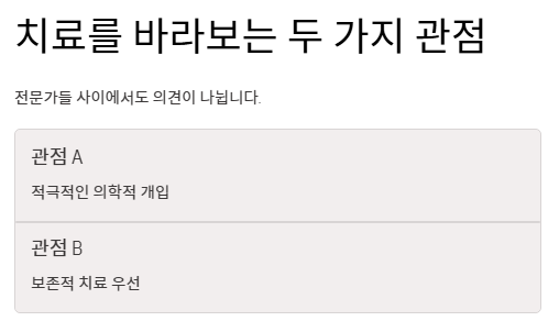 어떻게 치료할 것인가에 대해 전문가들 사이에서도 두 가지 시각이 존재합니다.