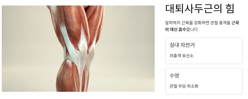 - 강력한 허벅지 근육은 무릎통증 원인을 방어하는 최고의 보호대입니다.