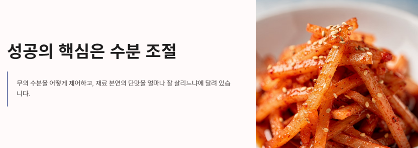 아삭아삭한 식감과 새콤달콤한 양념이 어우러진 무생채는 입맛 없는 날 최고의 밥반찬이자 비빔밥의 주인공입니다. 하지만 집에서 직접 무생채 맛있게 하는법을 시도해 보면 생각보다 까다롭다는 것을 느끼게 됩니다. 어떤 날은 무에서 수분이 너무 많이 나와 양념이 씻겨 내려가고, 또 어떤 날은 무 특유의 매운맛이 강해 젓가락이 가지 않았던 경험이 있으실 겁니다. "식당에서 나오는 무생채는 어떻게 다 먹을 때까지 국물이 생기지 않고 색깔이 고울까?", "무의 단맛을 극대화하면서 아삭함을 유지하는 비결은 무엇일까?"라는 의문이 드신다면 오늘 제대로 찾아오셨습니다.