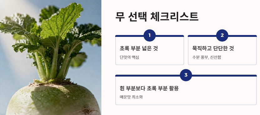 1. 첫 단추: 무생채 맛있게 하는법의 핵심, 무 선택과 썰기