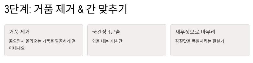 - 쌀뜨물이나 대파를 적절히 활용해 잡내를 잡고 시원함을 극대화합니다.