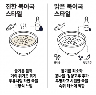요리의 스타일과 입맛에 따라 북어국 맛있게 끓이기는 크게 두 가지 시각으로 나뉩니다.
