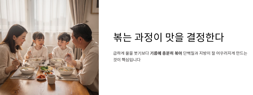 "어제 마신 술 때문에 속은 타들어가는데, 왜 내가 끓인 국물은 식당처럼 뽀얗고 구수하지 않고 밍밍하기만 할까요? 단 10분의 차이로 국물 맛을 보약처럼 만드는 한 끗 차이의 비법을 공개합니다."