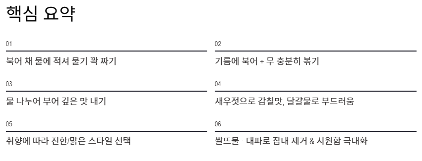 오늘 상세히 살펴본 북어국 맛있게 끓이기의 핵심 내용을 정리합니다.