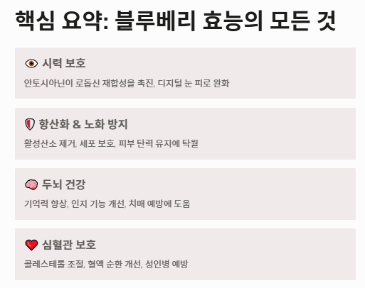 오늘 정리한 블루베리 효능의 핵심은 다음과 같습니다.