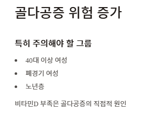 특히 40대 이후 여성에게 흔한 비타민d 부족증상으로, 골다공증 위험을 높입니다.