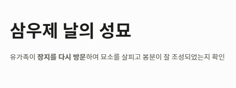 - 날짜 계산: 장례 당일을 포함하여 3일째 되는 날 행하는 것이 정석입니다.