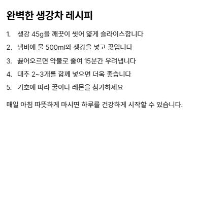 오늘 알아본 생강 효능을 짧게 요약하면 다음과 같습니다.