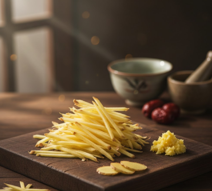 - 한의학적 관점 (기혈 순환과 온기): 한방에서는 생강을 '건강(말린 생강)'이라 부르며 양기를 회복하는 데 핵심적인 약재로 봅니다. 차가운 기운을 밖으로 내보내고 비위(소화기)를 따뜻하게 하여 만병의 근원인 '냉기'를 잡는 것이 최고의 생강 효능이라고 강조합니다.