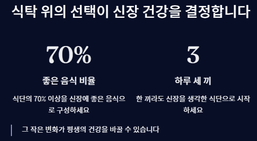 하루 세 끼 중 한 끼라도 신장을 생각한 식단을 시작해 보세요. 그 작은 변화가 평생의 건강을 바꿀 수 있습니다.