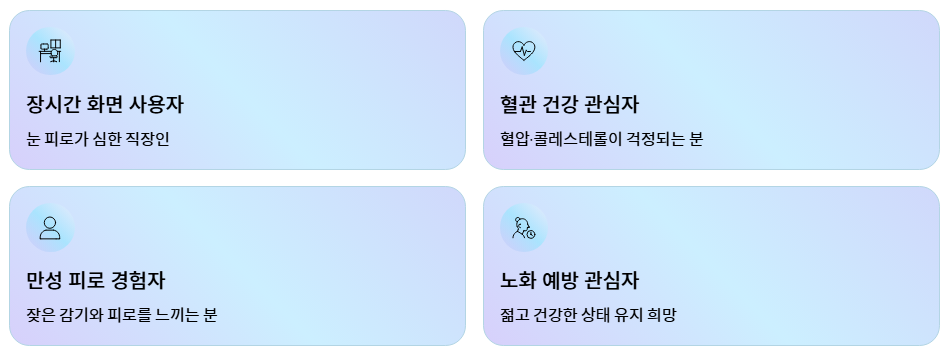 - 장시간 스마트폰·컴퓨터를 사용하는 현대인의 눈 피로 관리에 아로니아 효능이 보조 역할을 할 수 있다는 의견도 있습니다.