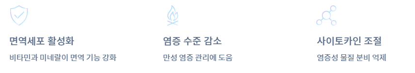 - 아로니아 속 항산화 성분과 비타민, 미네랄은 면역세포 기능을 돕고 전신 염증 수준을 낮추는 데 기여할 수 있습니다.