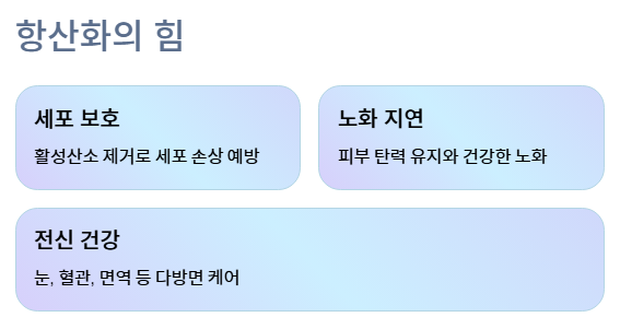 - 이 아로니아 효능 덕분에 노화 지연, 피부 탄력 유지, 세포 손상 감소에 도움이 될 수 있습니다.