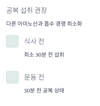 - 공복 섭취 권장: 아르기닌은 다른 아미노산과 흡수 경쟁을 하므로, 식사 전이나 운동 30분 전 공복에 먹는 것이 아르기닌의 효능을 높이는 방법입니다.