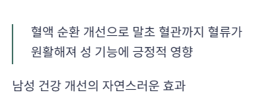 혈액 순환이 개선되면서 말초 혈관까지 혈류가 원활해지기 때문에, 남성의 성 기능 개선에도 긍정적인 영향을 미치는 것이 아르기닌의 효능 중 하나로 잘 알려져 있습니다.