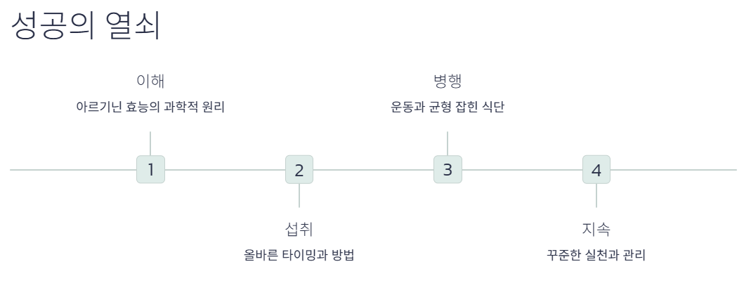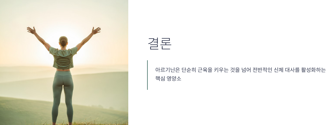 - 결론: 아르기닌의 효능은 단순히 근육을 키우는 것을 넘어 전반적인 신체 대사를 활성화하는 데 큰 도움을 줍니다.