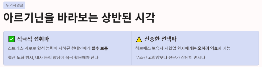 3. 아르기닌의 효능을 바라보는 두 가지 상반된 관점