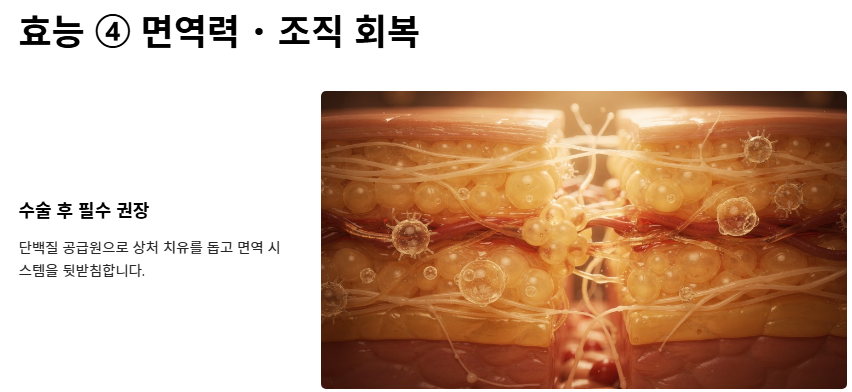 - 면역력 및 조직 회복: 단백질 공급원으로서 상처 치유를 돕고 면역 시스템을 뒷받침하는 알부민의 효능 덕분에 수술 후 환자들에게 필수적으로 권장됩니다.