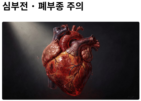 - 심부전 및 폐부종: 혈액량이 급격히 늘어나면 심장에 무리가 갈 수 있으므로, 의료진의 판단 하에 알부민의 효능을 체감해야 합니다.