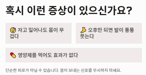 "기력이 바닥나고 몸이 퉁퉁 붓는 당신, 혹시 내 몸의 '운반 트럭'이 멈춘 건 아닐까요?"아무리 쉬어도 피곤함이 가시지 않고, 평소보다 양말 자국이 깊게 남을 정도로 다리가 붓는다면 우리 몸속