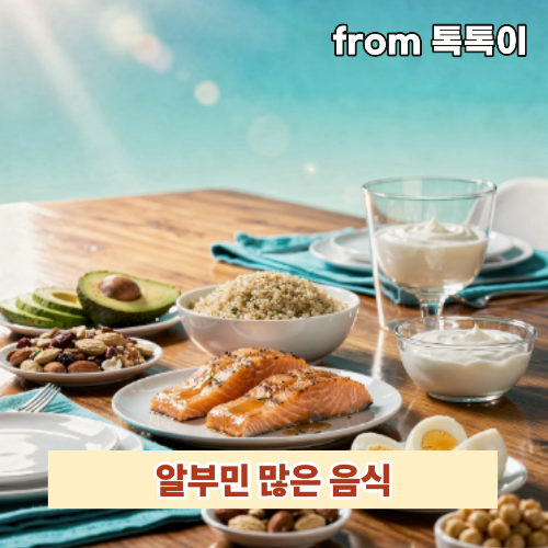 알부신 많은 음식의 핵심은 계란, 닭가슴살, 두부, 그릭요거트, 연어 등 고품질 단백질+간 보호 음식 조합입니다. 하루 1.2~1.6g/kg 체중 단백질을 소량씩 자주 먹으면 알부신 수치가 자연스럽게 회복됩니다.