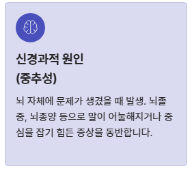 - 신경과적 원인 (중추성): 가장 위험한 어지럼증의 원인입니다. 뇌졸중(뇌경색), 뇌종양 등 뇌 자체에 문제가 생겼을 때 발생하며, 말이 어눌해지거나 중심을 잡기 힘든 증상을 동반합니다.