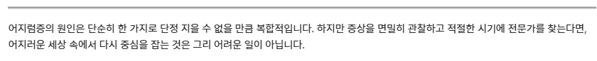 - 기능적/심리적 관점: 검사상 아무런 이상이 없음에도 지속되는 어지러움을 '지속성 체위-지각 어지럼증(PPPD)' 등으로 설명합니다. 불안, 우울, 과도한 예민함이 신경계를 과활성화시켜 어지럼증의 원인이 된다고 보는 것입니다. 이 경우 단순 약물보다는 인지 행동 치료나 생활 패턴 교정이 더 효과적인 해결책이 됩니다.