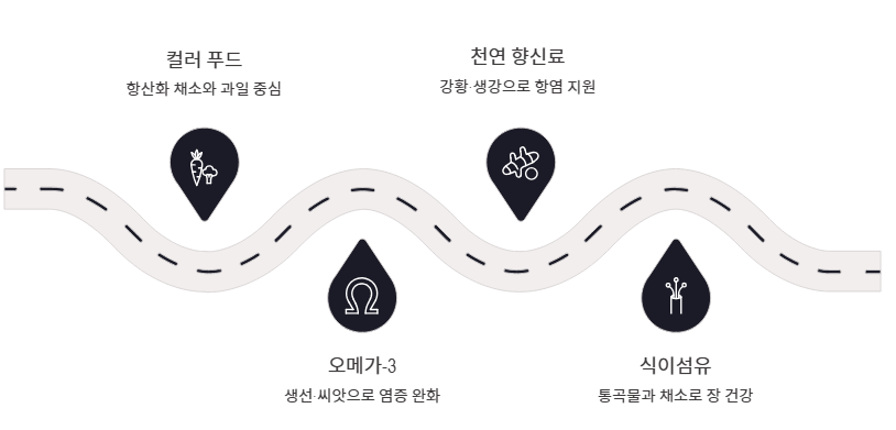 - 만성 염증은 각종 성인병과 피로의 근원이므로 식단 관리가 필수입니다.