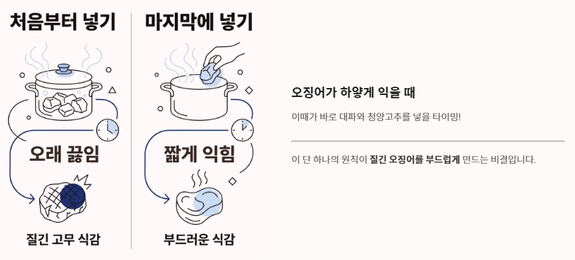 4단계: 오징어 투입과 타이밍