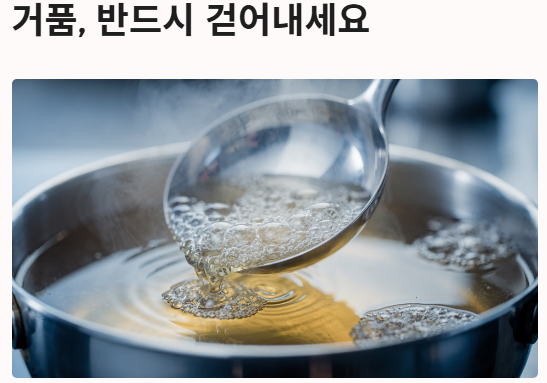 - 액젓 소량 사용과 거품 제거가 깔끔한 감칠맛의 비결입니다.