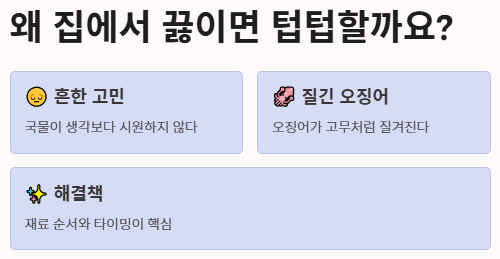 "시원한 국물의 대명사, 왜 내가 끓인 오징어 무국은 텁텁할까요?"
