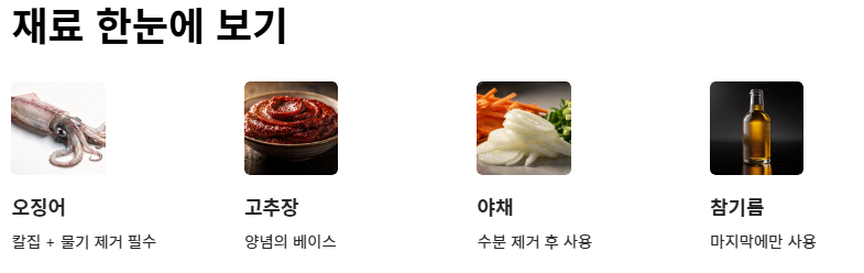 오늘 마스터한 오징어 볶음 맛있게 만드는법의 핵심 내용을 정리해 드립니다.