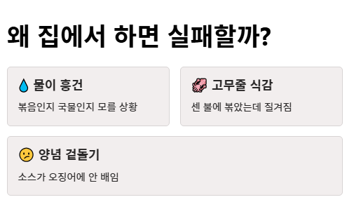 "식당 오징어 볶음은 탱글하고 매콤한데, 왜 우리 집은 물이 흥건하고 질겨질까요?"