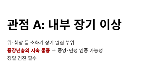 - 초음파나 내시경 등 전문적인 검사를 통해 장기 이상 여부를 확인하는 것이 안전합니다.