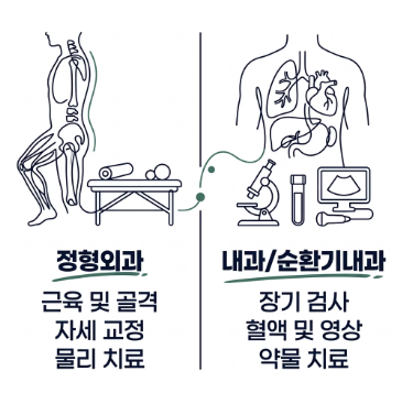 - 관점 B: '내장기 연관통' 중심의 접근 등 자체의 문제보다 내부 장기의 이상이 피부 신경으로 투사되는 신호에 집중합니다. 왼쪽 등쪽 통증을 단순 근육통으로 치부해 파스만 붙이다가 심장이나 췌장 질환을 키울 수 있다는 경고입니다. 특히 고령자나 기저질환자에게는 정밀 검진을 우선 권고하는 관점입니다.