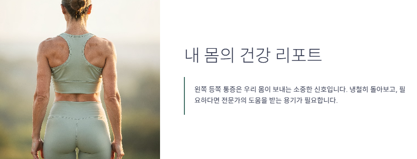 "어느 날 갑자기 느껴지는 왼쪽 등의 묵직한 통증, 단순한 근육통일까요 아니면 우리 몸속 깊은 곳 장기가 보내는 긴급한 구조 신호일까요?"