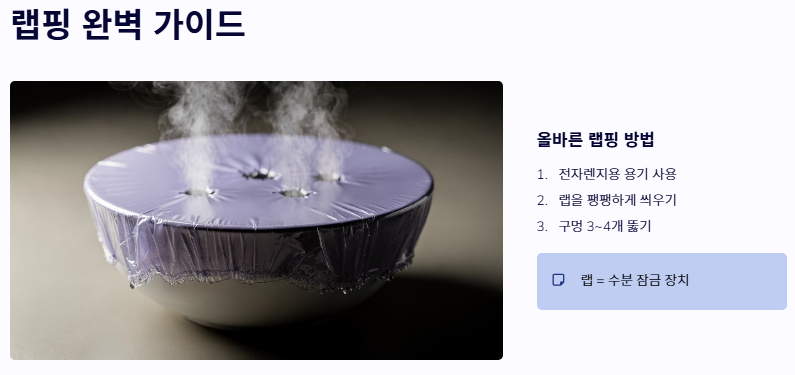- 랩을 활용해 수분이 날아가는 것을 방지합니다.