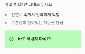 - 가열 중간에 한 번 섞어주는 과정이 고른 익힘을 결정하는 전자레인지 계란찜 맛있게 하는법의 포인트입니다.