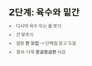 - 우유를 넣으면 고소해지고, 육수를 넣으면 시원하고 깊은 맛이 납니다.