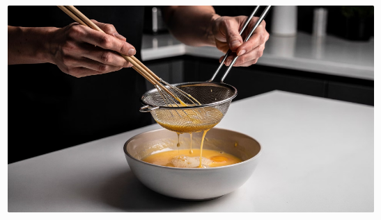 - 계란과 물의 비율을 1:1 정도로 맞추고 체에 걸러 부드러움을 살립니다.