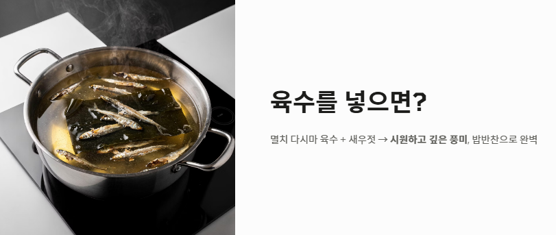 - 새우젓이나 맛술을 활용해 감칠맛을 높이고 비린내를 제거합니다.