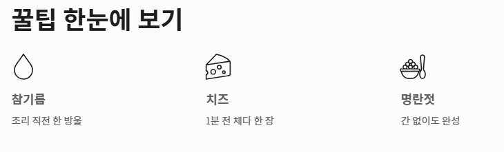 - 명란젓 추가: 짭조름한 명란을 잘게 잘라 넣으면 별도의 소금 간 없이도 훌륭한 요리가 됩니다.