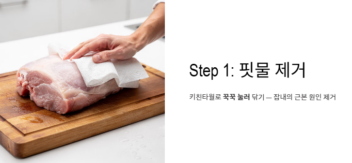 - 핏물 제거: 고기에서 나는 잡내의 원인은 대부분 핏물입니다. 키친타월로 고기를 꾹꾹 눌러 핏물을 닦아내는 것만으로도 훨씬 깔끔한 제육볶음이 가능해집니다.