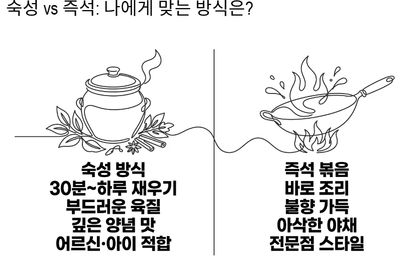 - 관점 B: '즉석 볶음'의 불향 가득한 맛 고기를 먼저 볶다가 양념을 즉석에서 넣어 코팅하듯 익히는 방식입니다. 기사식당이나 전문점에서 주로 사용하며, 야채의 아삭함과 고기의 쫄깃함, 불향이 살아있는 활기찬 제육볶음 맛있게 만드는법입니다.