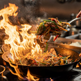 - 강불에서 빠르게 볶아 야채의 수분 발생을 최소화하고 불맛을 살립니다.