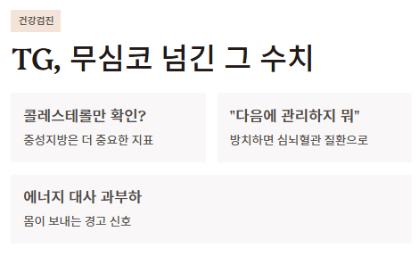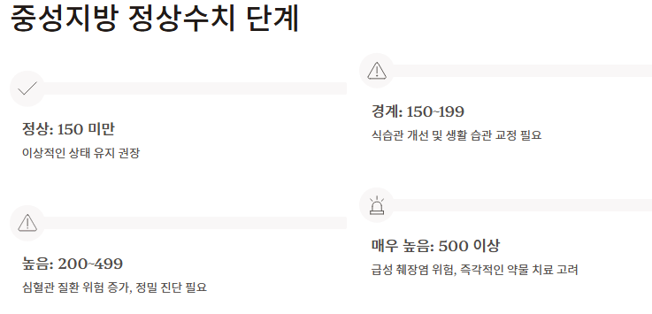 - 기준: 150mg/dL 미만이 중성지방 정상수치의 골든 라인입니다.
