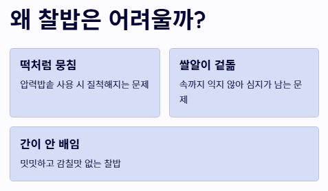 "쫀득한 식감과 씹을수록 배어나는 단맛, 왜 내가 만든 찰밥은 떡처럼 뭉치거나 쌀알이 겉돌까요?"