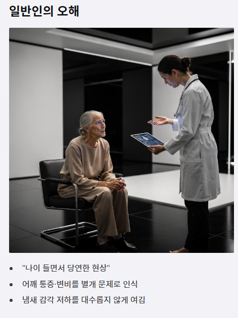 - 어깨 통증·변비·냄새 감각 저하를 별개 문제로 생각