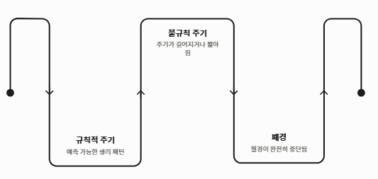 - 생리 주기의 불규칙: 가장 먼저 나타나는 폐경기 전조증상은 생리 주기가 길어지거나 짧아지는 등 종잡을 수 없게 변하는 것입니다.