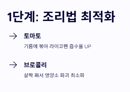 항암 성분은 열에 약하거나 특정 조건에서 더 잘 흡수됩니다. 토마토는 기름에 볶고, 브로콜리는 살짝 쪄서 영양소 파괴를 최소화하는 방식으로 폐암에 좋은 음식 10을 조리하세요.